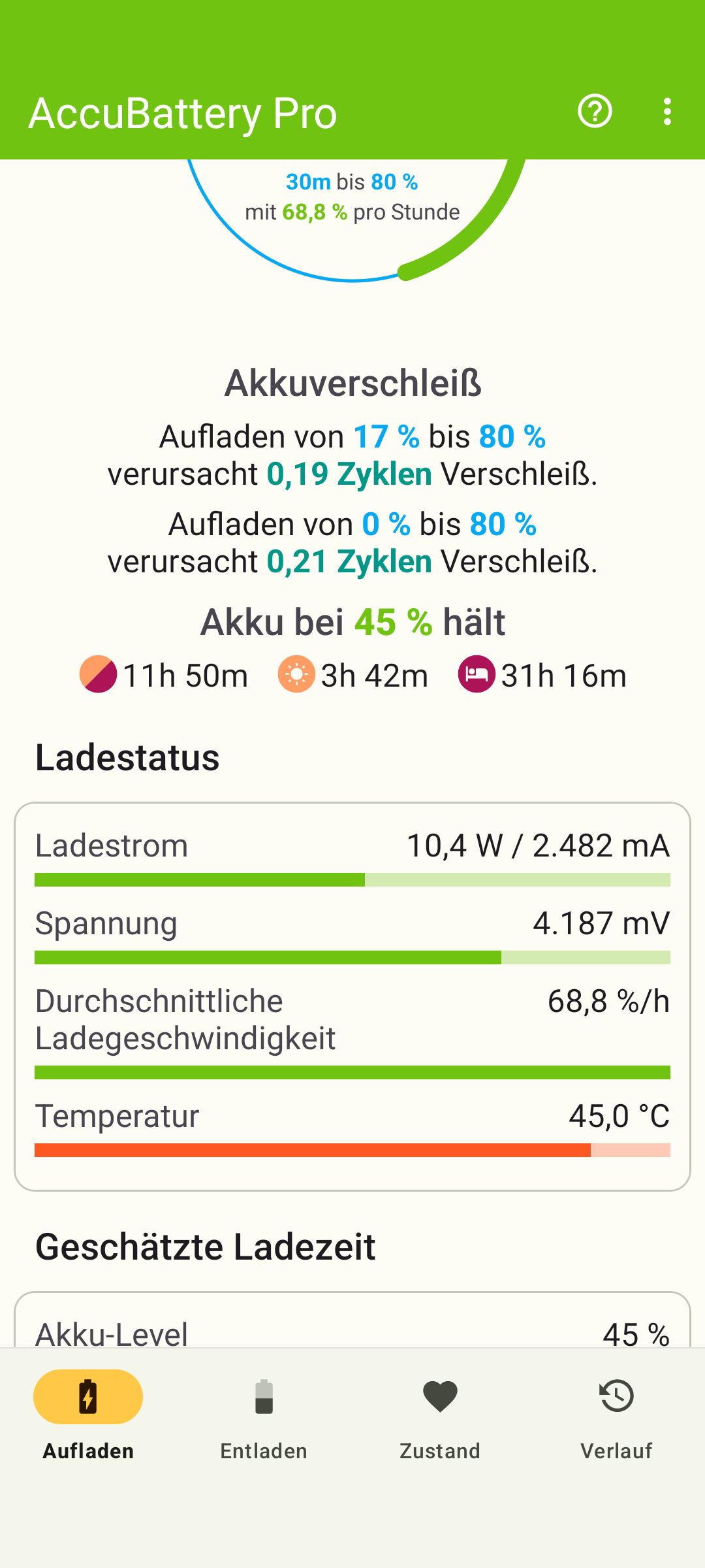 So ich habe es heute Mal von früh bis Abend beobachtet und mit AccuBattery getrackt mit folgenden Ergebnis.