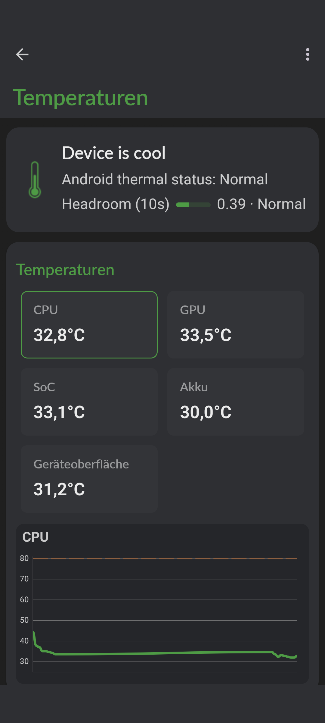 Könnte also schau auf ein optimiertes bzw. verbessertes Energiemanagement von A14 auf A15 hindeuten.Richtig, ich nutze OS-L. Ich habe OS-G nur benutzt bis L zur Verfügung stand. In meinem Bericht in November '24 (hier) hatte ich für 2h Navigation ein Maximum von 46° unter OS-G angegeben.