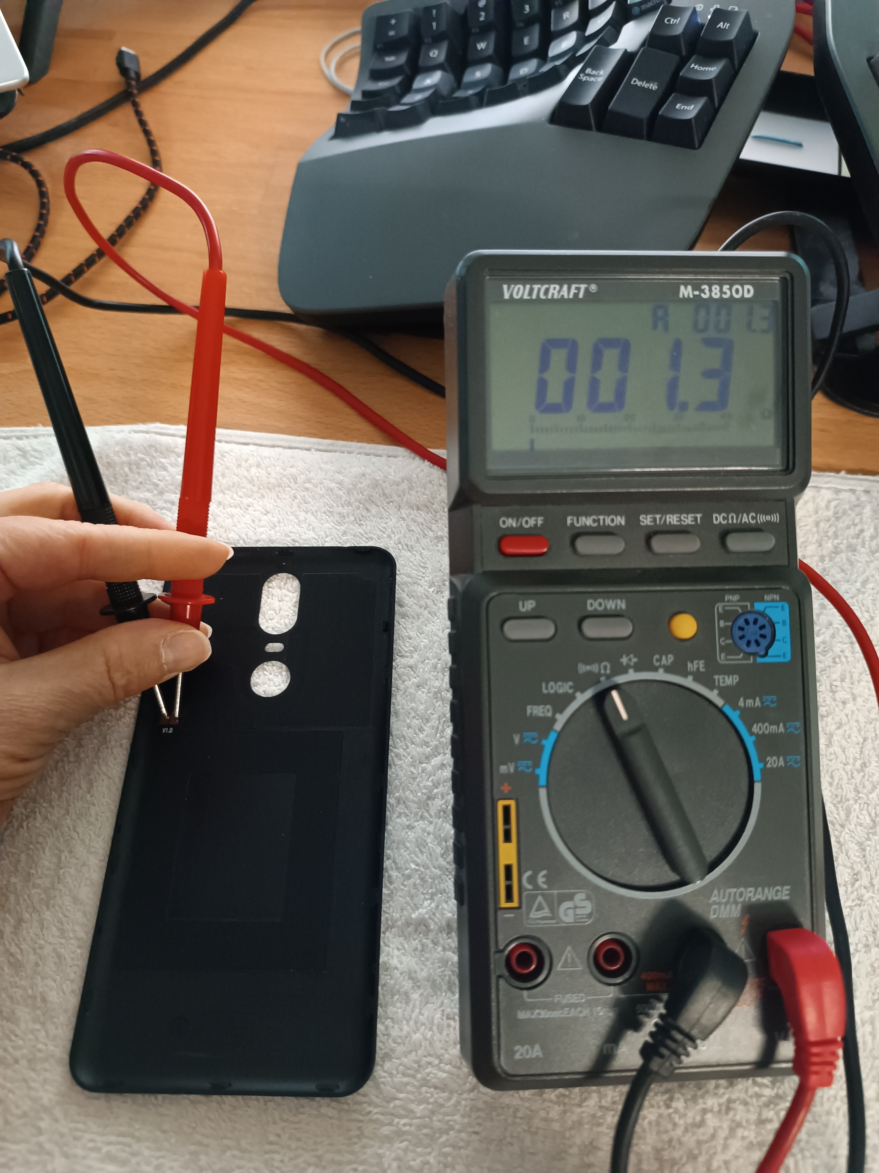 Messe ich den Widerstand der Antenne bekomme ich 1,3 Ohm: